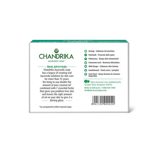 Chandrika truly deserves to be called the Real Ayurvedic Soap, it has more than double the amount of coconut oil and ayurvedic herbs, which gently treat skin problems - for Clear, beautiful skin