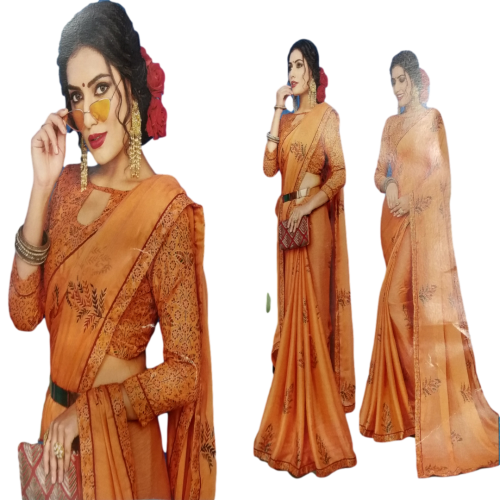 Linen Silk Printed Saree with Blouse