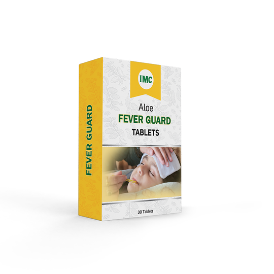 Medications can lower your fever but leave the root cause of it untreated. Fever or high temperature can be a result of chronic cough, cold, bronchitis, etc. Regular medications bring the temperature down, while hardly doing anything to the root cause of it. Replete with herbs like Aloe Vera, Desi Tulsi, Giloy and Haldi Extracts, Herbal Fever Guard Tablets have powerful healing powers in every tablet and help in eliminating the roots cause of these. Aloe Fever Guard is a one-stop solution for all kinds of fever, which not only immediately brings down your fever, but will help in speeding up the recovery process while building up your lost immunity without any side effects.