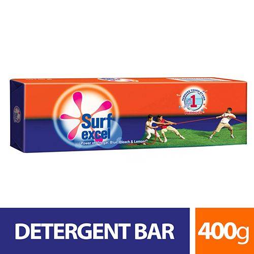Surf excel bar combines the power of 4 products - vinegar, blue, bleach and lemon into just 1 product, thereby helping you fight and remove tough stains easily that help you save time, money and effort you put behind laundry.