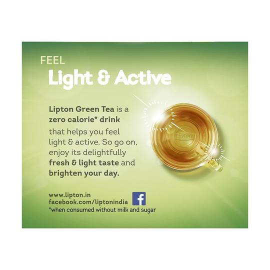Lipton Green Tea is not just a regular cup of chai, we believe it's a therapy for your body. Wake up to a morning cup of hot Lipton green tea and feel how it leaves you feeling light and active. Awaken your senses - one sip at a time. Buy Now! Magic of Green Tea Green tea is produced when freshly plucked leaves are heated, rolled/cut and then dried. The catechins in the fresh leaves are preserved during the green tea process, making green tea rich in catechins. Also, green tea is typically drunk without milk and sugar and hence gives zero calories as compared to the ordinary chai made with milk and sugar. Available in a range of flavours, Lipton offers a range of different flavours to ensure that you are offered variety and enjoyment while drinking tea. Lipton flavours some of its teas with added natural flavours and no artificial flavours are used. You may try Lipton Green tea in Pure Light (unflavored), Tulsi Natura, Honey Lemon and Lemon Zest flavours as well, available in pack sizes of 10s and 25s Teabags.