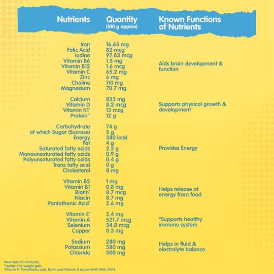 *Enriched with goodness of wheat and milk to meet your child's nutritional requirement