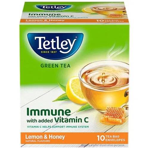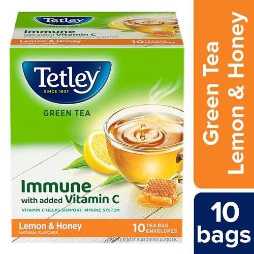 Tetley Green Tea, Lemon and Honey, 10 Tea Bags (10 Bags x 1.5 g each)