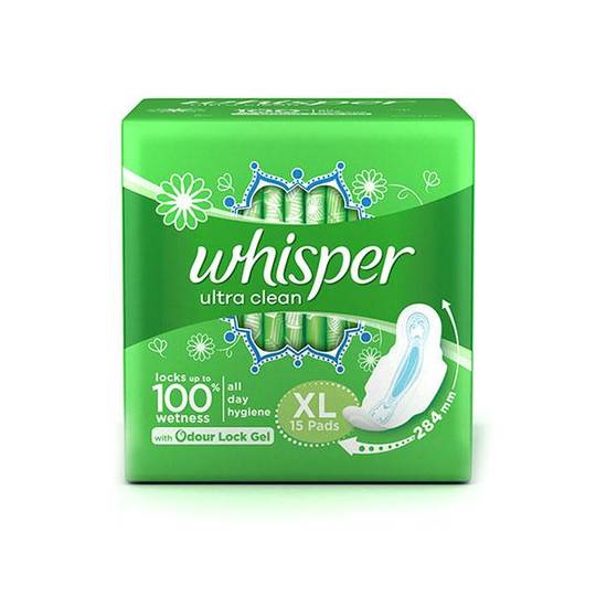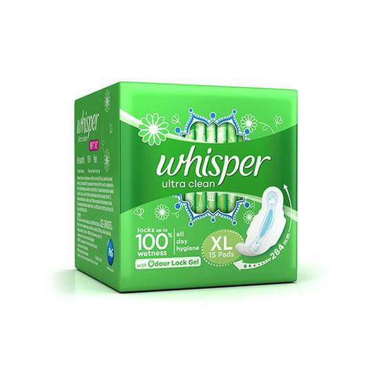 Whisper Ultra Clean Sanitary Pads XL wings (15 Count)