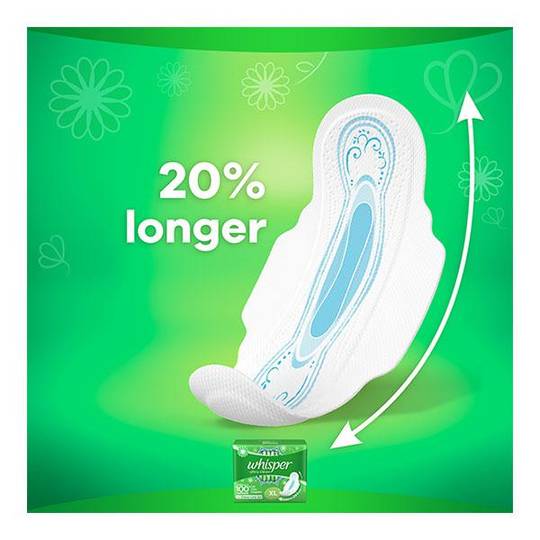 Five Times Better Protection and More Absorption: Whisper Ultra Clean pads provide five times better protection and absorb liquid in seconds, so you can enjoy the long-lasting freshness.