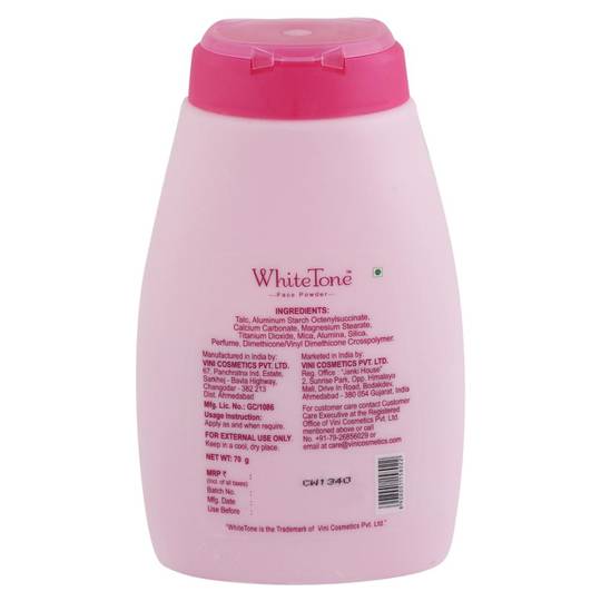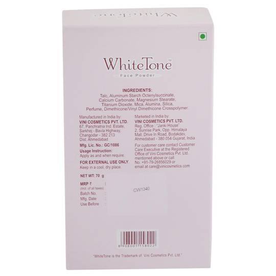 White Tone Face Powder : At times when you do not have the time to use layers of makeup so as to steal the show at special occasions, you need a product that quickly gives you the right finishing touch. You can fall back on this White Tone Face Powder at such times. Formulated especially for the face, this talcum powder has a smooth texture that gives you a great finish. A wonderful quality of using this talcum powder is that you get a smooth and glowing face that does not look made up at all. With a soft shade formula, this White Tone Face Powder diminishes minor blemishes and gives you an even tone. You will certainly like the wonderful matte finish that this face powder gives you; your skin will look and feel smoother naturally.