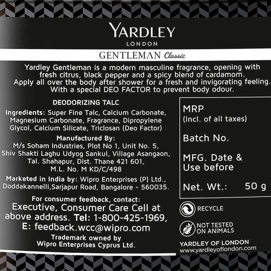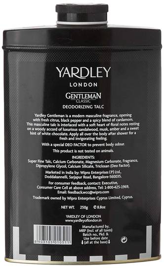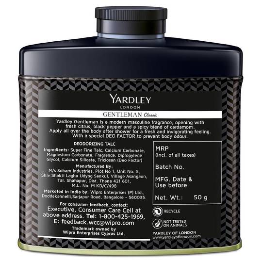 Enjoy the contemporary, elegant, sophisticated feel with the Gold range of Yardley Talc. As refreshing as ever. Designed to suit all