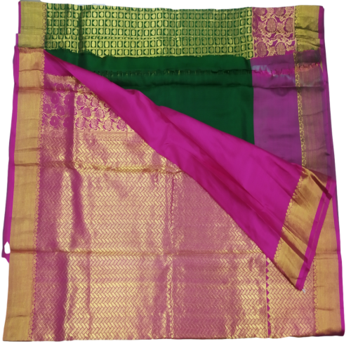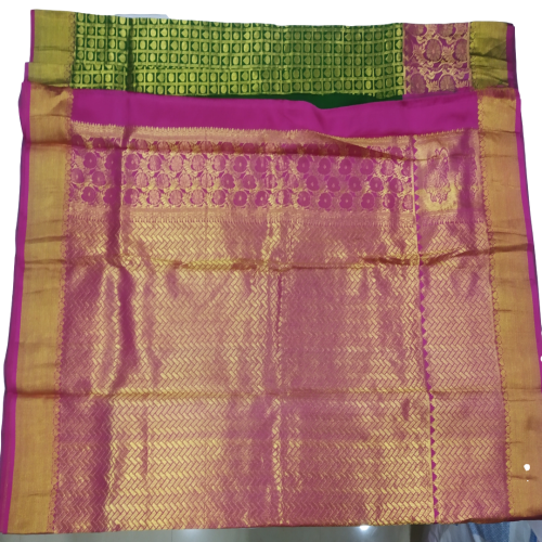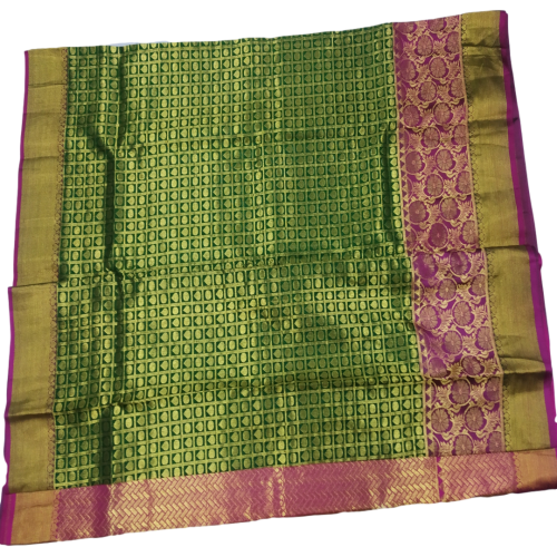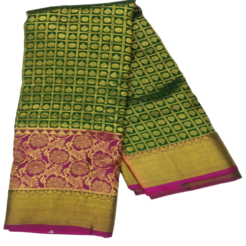 Kanchi Broket Green Pattu Saree with Rose Border(Silk)