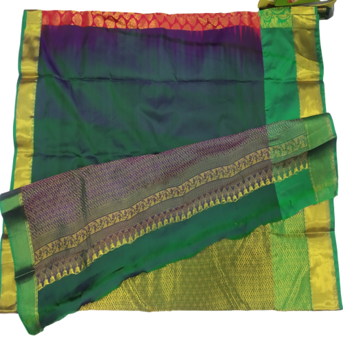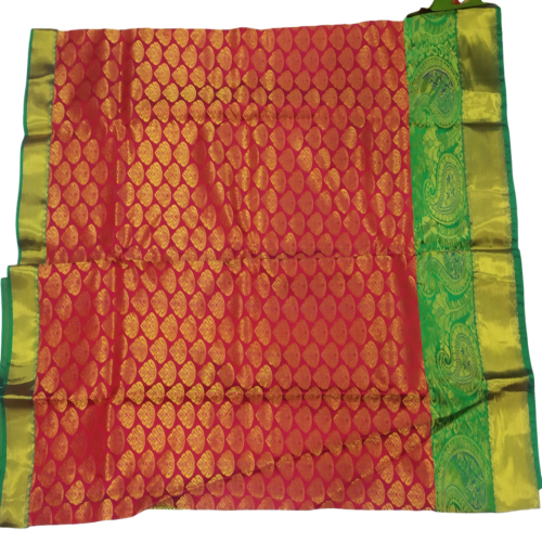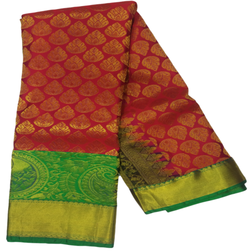 Kanchi Broket MaroonRed Pattu Saree with Green Big Border(Silk)