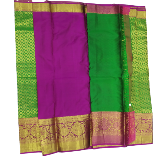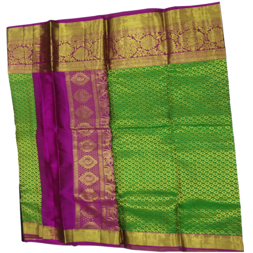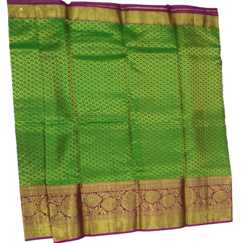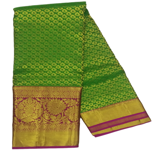 Kanchi Broket Parrot Green Pattu Saree with Rose Border(Silk)