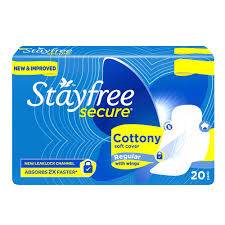 Stayfree Secure Regular Cottony Soft Cover Sanitary Pads For Women With Wings. Cottony soft regular with wings which makes you feel comfortable and let you carry on with your life as usual. Super absorb design stays close, absorbs more and helps prevent leaks. Soft touch cover to prevent rashes and skin irritation.