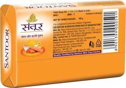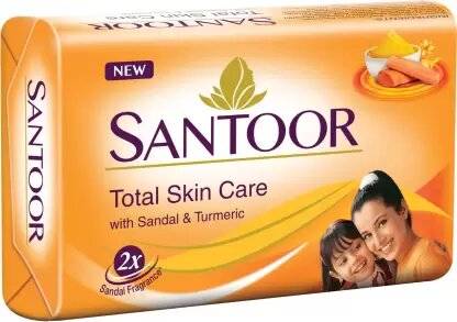 Santoor has grown from a traditional south Indian soap to a modern beauty soap that carries the secret of younger looking skin for women of different age groups. Sandal and Turmeric have been an essential part of the Indian woman's skin care regimen for centuries. The deep acting ingredients of Turmeric and Sandal in the soap provide a smooth, soft and clear skin while also giving a youthful glow to the skin. It has fresh, energizing and a long-lasting fragrance. Its a great solution for problems such as blackhead, acne and skin allergies. It removes tanning, cures skin itching and detoxifies the skin.