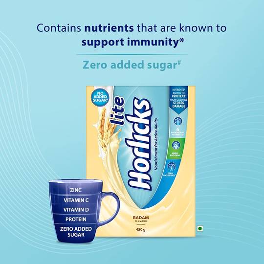 Horlicks Lite No Added Sugar Powder - Badam Flavour