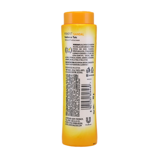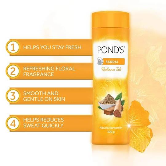 Mesmerize everyone with your subtle fragrance when you use Ponds Sandal Talcum Powder. This powder, with Its essential sandalwood aroma is designed to keep feeling soothed and fresh for a long time. Its silky texture is easy to apply and is highly effective. This powder keeps you feeling dry and clean even during sultry days of the summer season and its sandalwood fragrance will protect you against body odors. The powder is multipurpose as it also comes with Sun Protection formula. You can use this powder to protect your skin against harmful effects of UV rays. It also helps to conserve and restore the natural glow of your skin. Buy the Ponds Sandal Talcum Powder now!