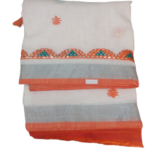 Type: Lenin Cotton Embroidary  Mirror Work  Saree with Blouse piece