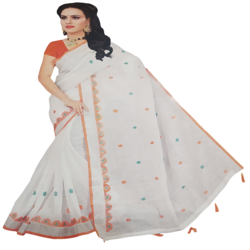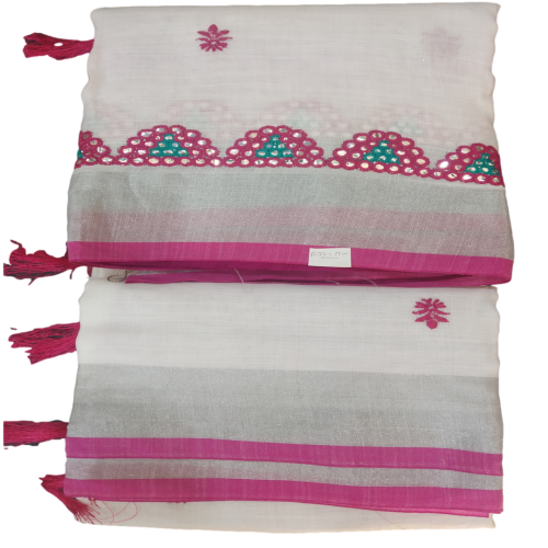 Type: Lenin Cotton Embroidary Mirror Work Saree with Blouse piece