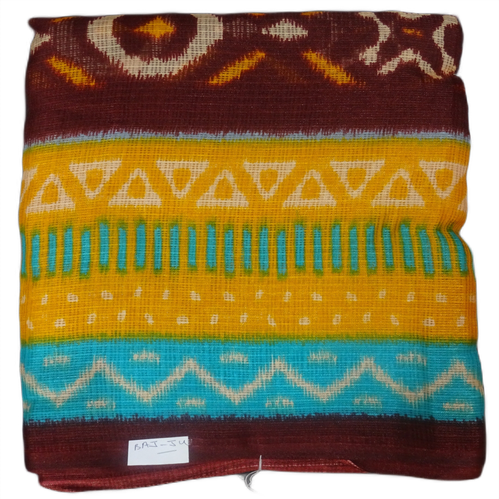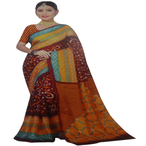 Maroon with Yellow+Sky Blue Border Saree,
