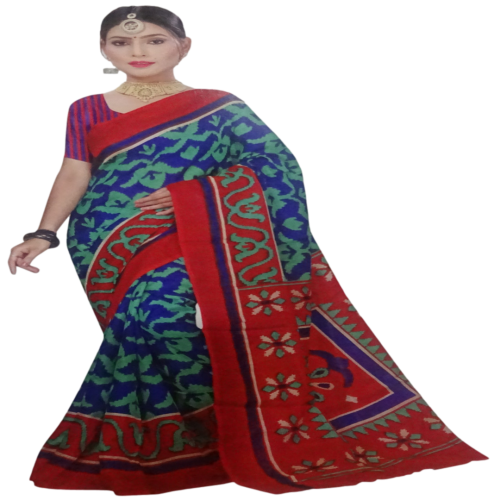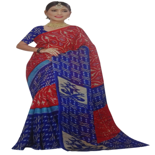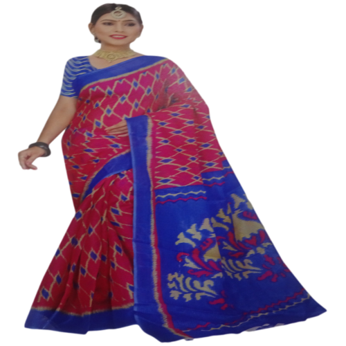 Red with Blue Border Saree