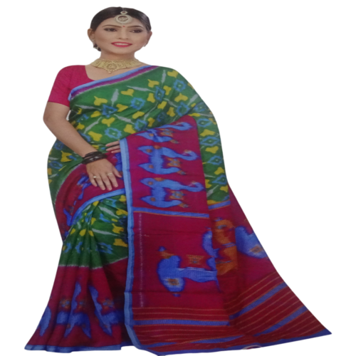 Green with Rani Combination Saree,