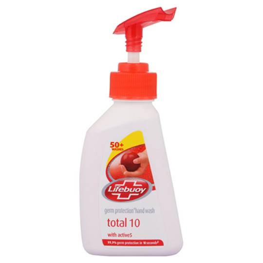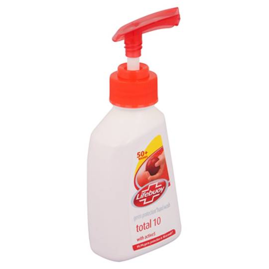 Perfect for keeping your hands clean and dirt-free, the Liquid Total 10 Hand Wash from Lifebuoy is a essential to have. Featuring an advanced formula, this effective hand wash offers you 99.9% germ protection after a quick 10 second hand wash. It eliminates dirt and protects you from skin impurities, giving you clean and soft hands instantly. This effective hand wash will let you have really clean and supple hands all day. Place the Lifebuoy Total Hand Wash in your bathroom or wash-basin area and keep your family healthy and germ-free!