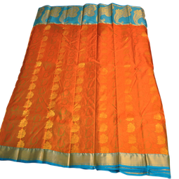 Kanchi Orange Pattu Saree with Skyblue Border(Silk)