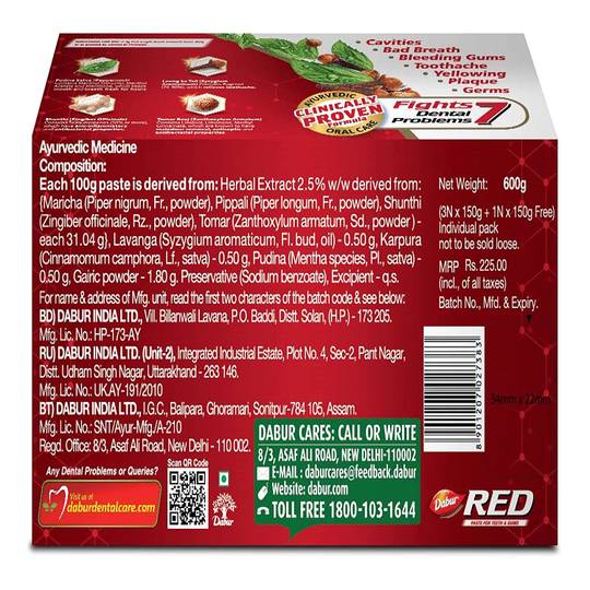 Dabur Red Toothpaste - Buy 3 150g+150g Free