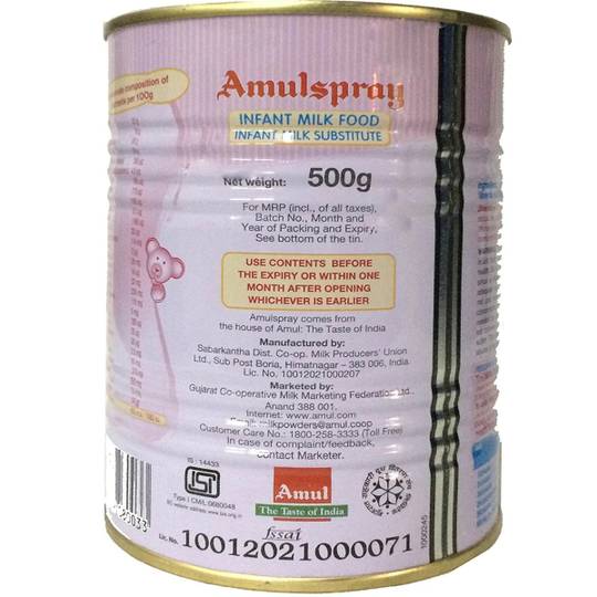 Amulspray Infant Milk Food is a good source of fortified vitamins and minerals for your small baby. It is a healthy milk substitute formulated under the guidelines of Amulspray Infant Milk Food. It provides nutrition and nourishment to infants and also can be used as a Dairy Whitener. Give your babies a complete nutritional drink during bottle-feeding to help their bodies fulfill the deficiency of essential elements.