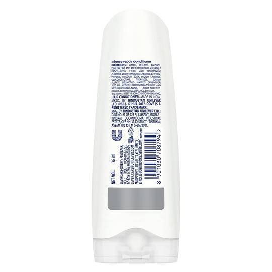 DETANGLES HAIR & REPAIRS DAMAGE: Dove Intense Repair Conditioner with Keratin Actives repairs damage along the hair length, detangling it to give you silky, smooth hair