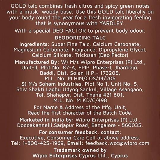 Yardley London Gold Deodorizing Talc has a refreshing fragrance that leaves you feeling energetic and fresh. Start the day on a relaxed note with a smooth fragrance that will give you company all day long. So what are you waiting for? Buy this product online at the best rate, right here!