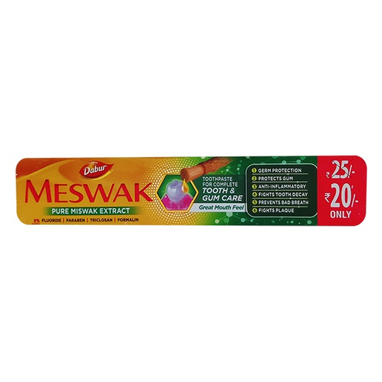 -Dabur Meswak provides Complete Oral Care: Fights Tartar & Plaque, Protection from Cavities, Fights Tooth Decay, Fights Germs & Bacteria, Gingival protection & Removes Malodour.